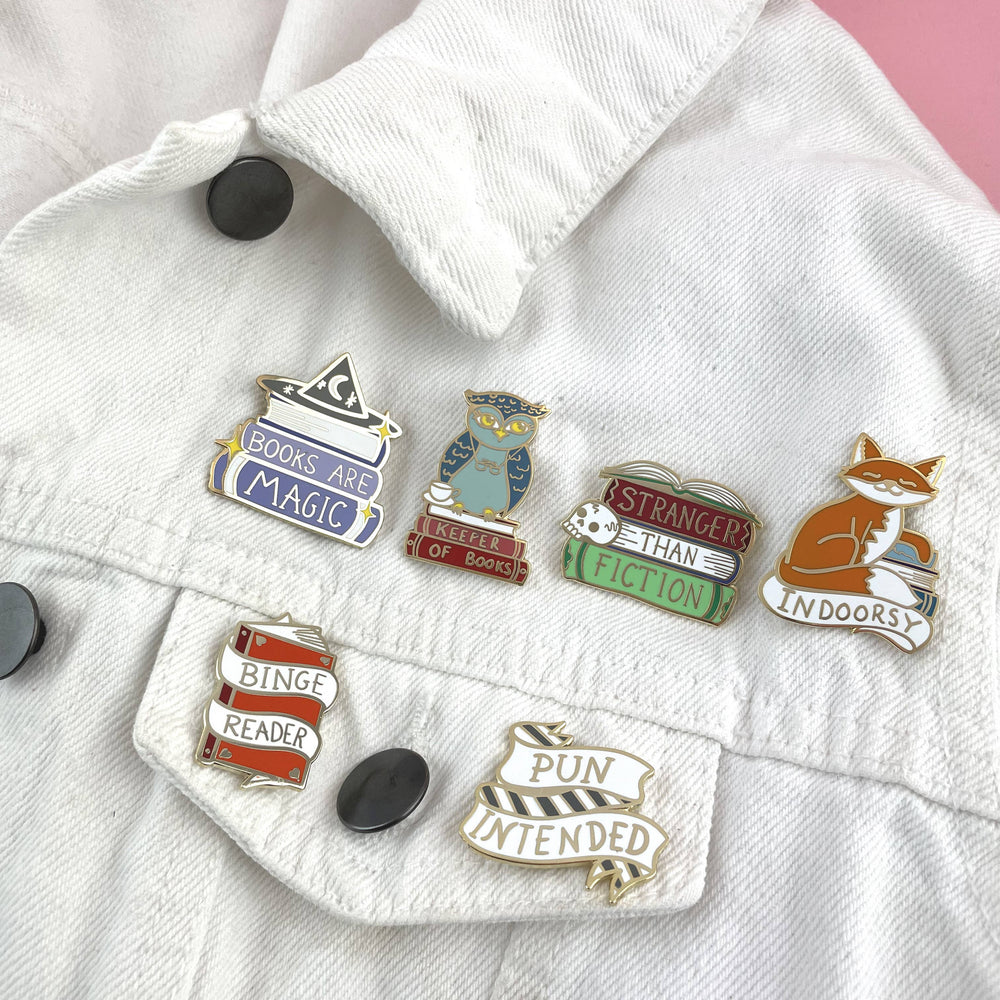 Books Are Magic Enamel Pin Badge features