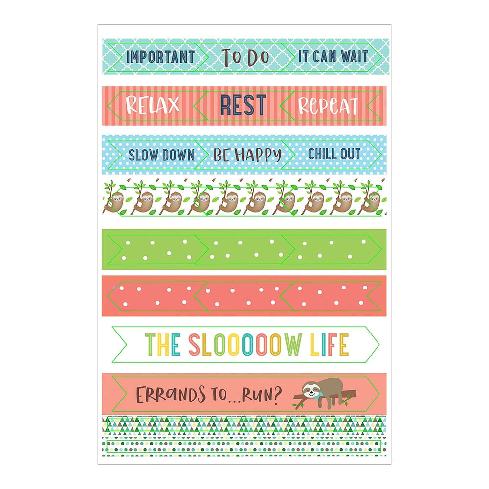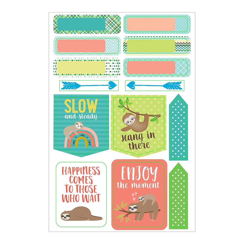 Essentials Sloth Planner Stickers pack includes decorative flowers, arrows, and more with adorable sloth-themed stickers.
