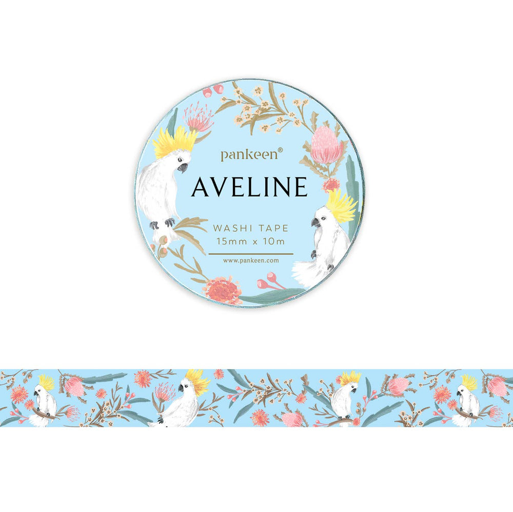 Aveline Light Blue Washi Tape is part of the Pankeen exclusive design tapes featuring Australian native flowers such as Protea, Banksia Coccinea and Golden Wattles.