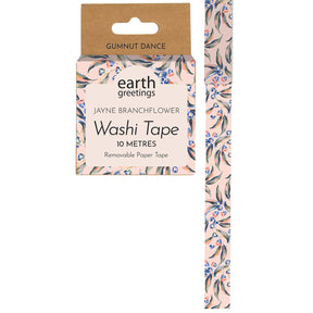 Earth Greetings Gumnut Dance Washi Tape is made from Japanese Washi paper with a 95% recycled paper core. It is a pretty paper tape featuring the botanical art of Australian artist Jayne Branchflower.