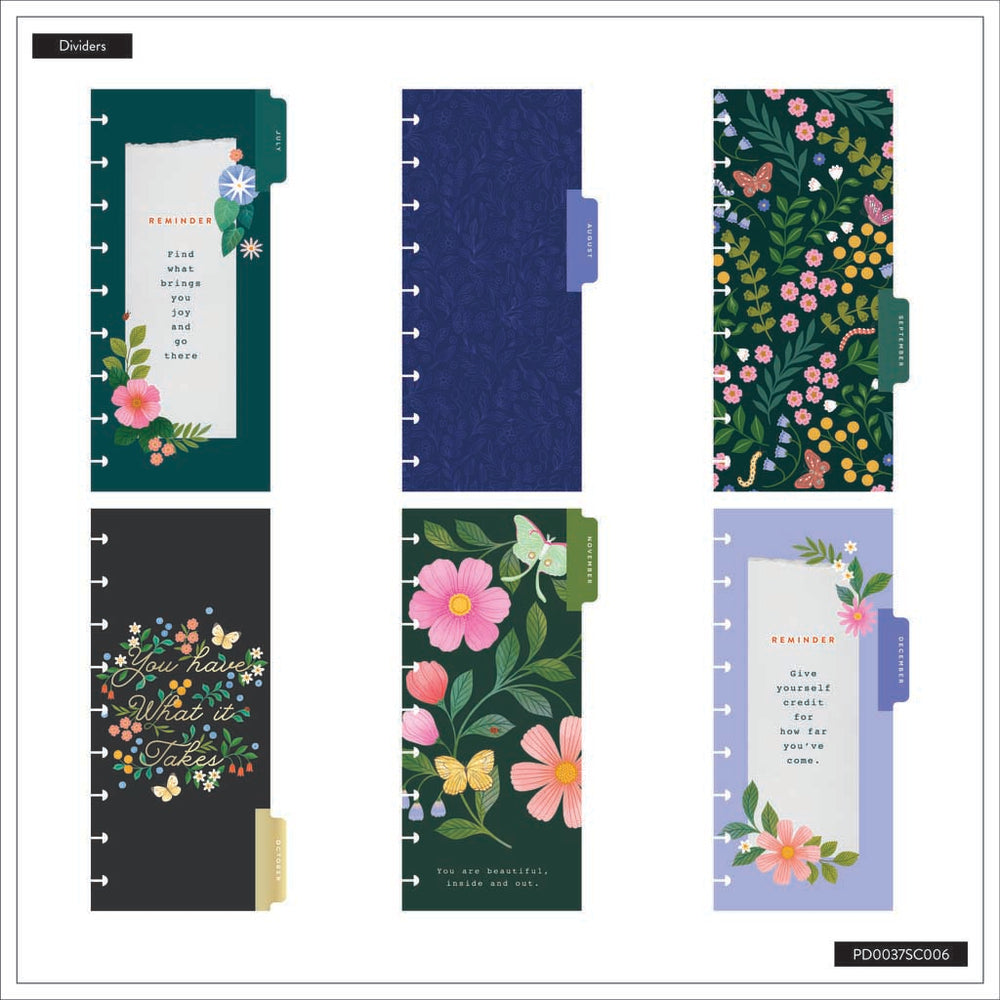 Horizontal Happy Planner Midnight Meadow Skinny Classic 12-Month Dated 2025-2026 include: