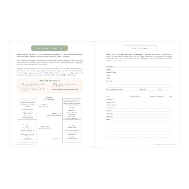 In-depth sections cover everything from pre-wedding parties to your honeymoon, including creating and keeping to your budget and schedule.