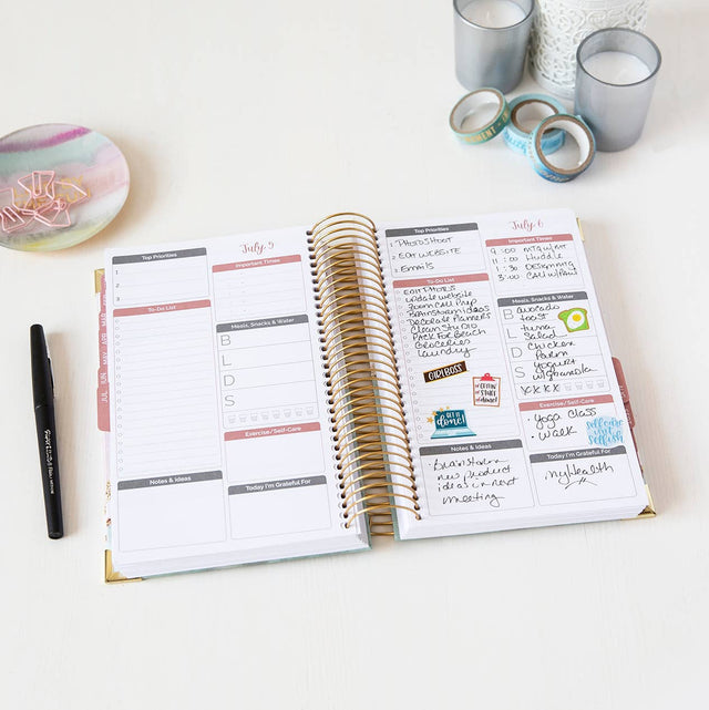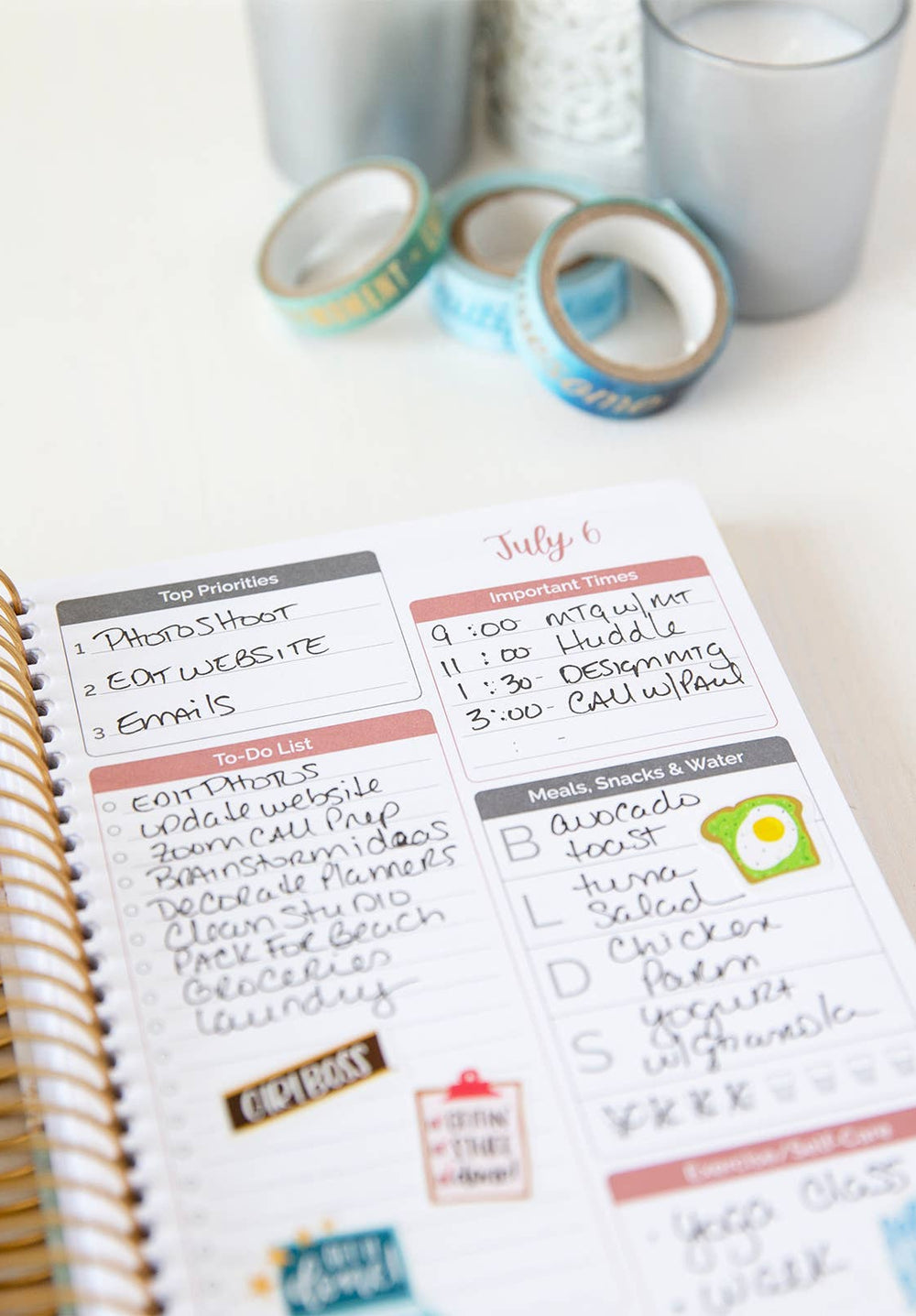 This Undated Daily Planner features 366 daily pages PLUS 12 spreads of monthly views. Use these daily lists to clear all the chatter from your head and record it on paper. Put everything in its box and get to work.