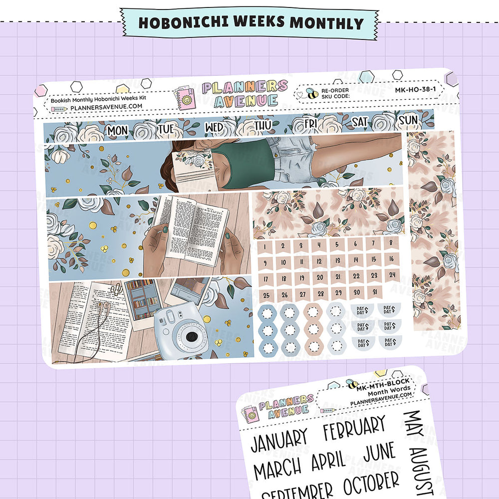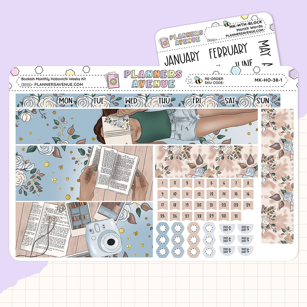 Bookish Hobonichi Monthly Sticker Foiled Kit is designed for decorating the monthly view in your Hobonichi Weeks planner or other similar planner sizes such as Lime weeks and Mini Mallow planner.