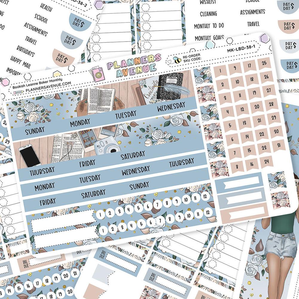 Bookish Leanne Baker Monthly Sticker Foiled Kit is perfect for decorating the monthly view in your Leanne Baker Weekly planner or other A5-sized planners.