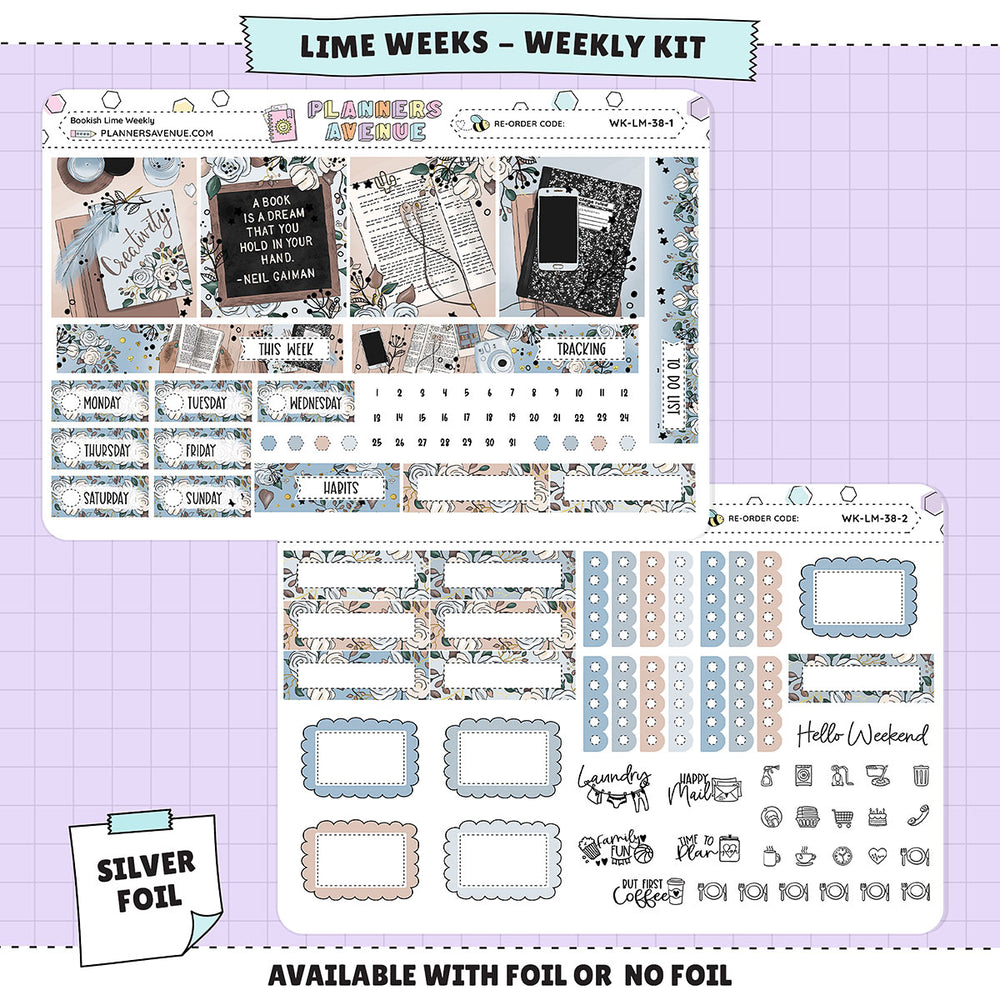 Bookish Lime Weekly Planner Sticker Foiled Kit (SILVER FOIL) - NO Foil -- Made To Order will ship when stock available