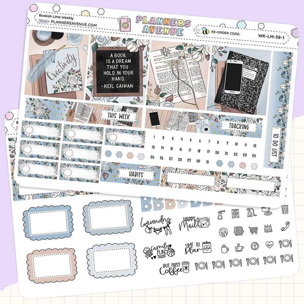 Bookish Lime Weekly Planner Sticker Foiled Kit is perfect for decorating the weekly view in your A5 Lime Weekly Planner or other similar planner layouts.