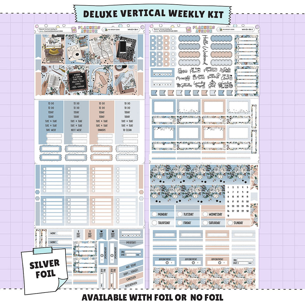 Bookish Vertical Weekly Sticker Foiled Kit (SILVER FOIL) - Vertical Weekly Kit / NO Foil -- Made To Order will ship when stock available