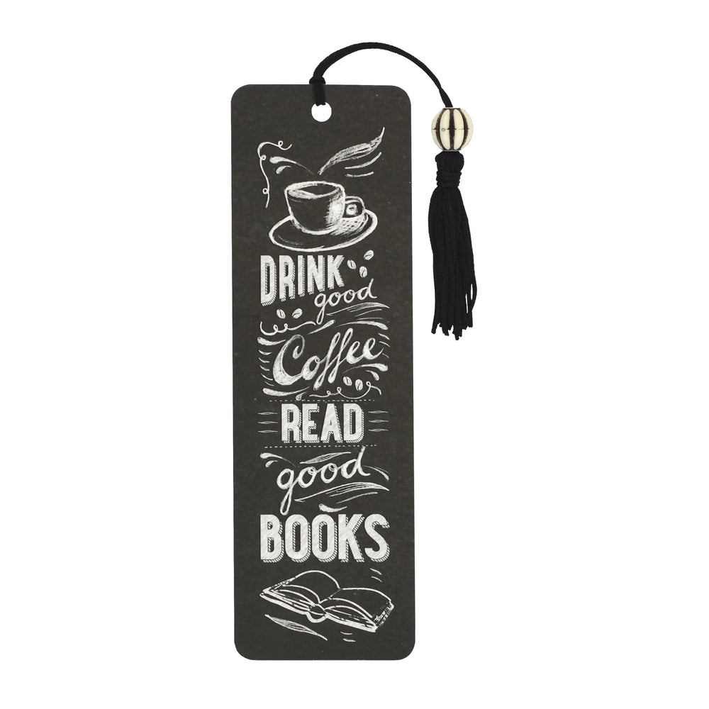 Caffeinate and curate your library with this dapper chalkboard-style Coffee & Books Beaded Bookmark showcasing the mantra, "Drink good coffee and Read good books"!