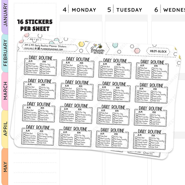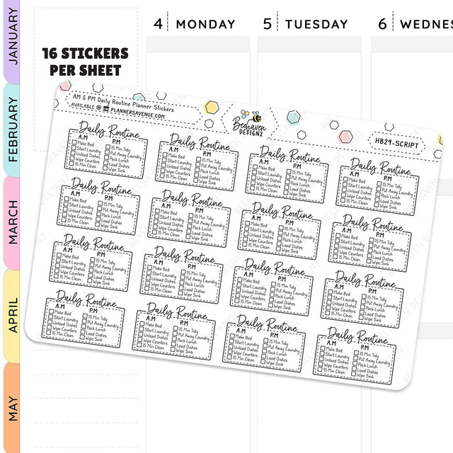 You will receive One (1) sheet of 16 Daily Routine Script Box Planner Stickers sized approx 2.5xm X 3.8cm