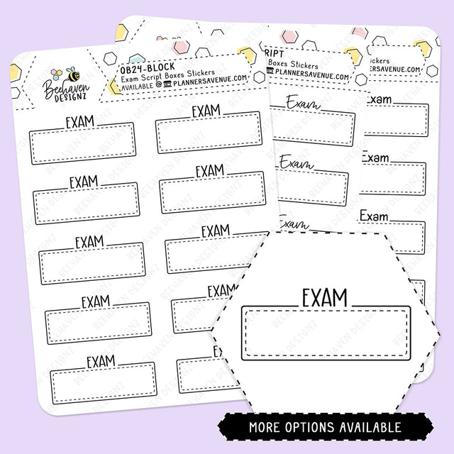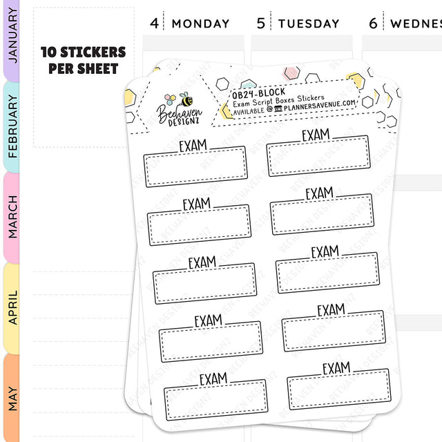 Exam Script Box Planner Stickers - Block Text -- Made To Order will ship when stock available