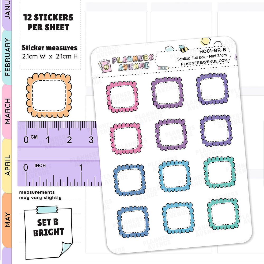 Hobonichi Scalloped Box Stickers - Bright A -- Made To Order will ship when stock available