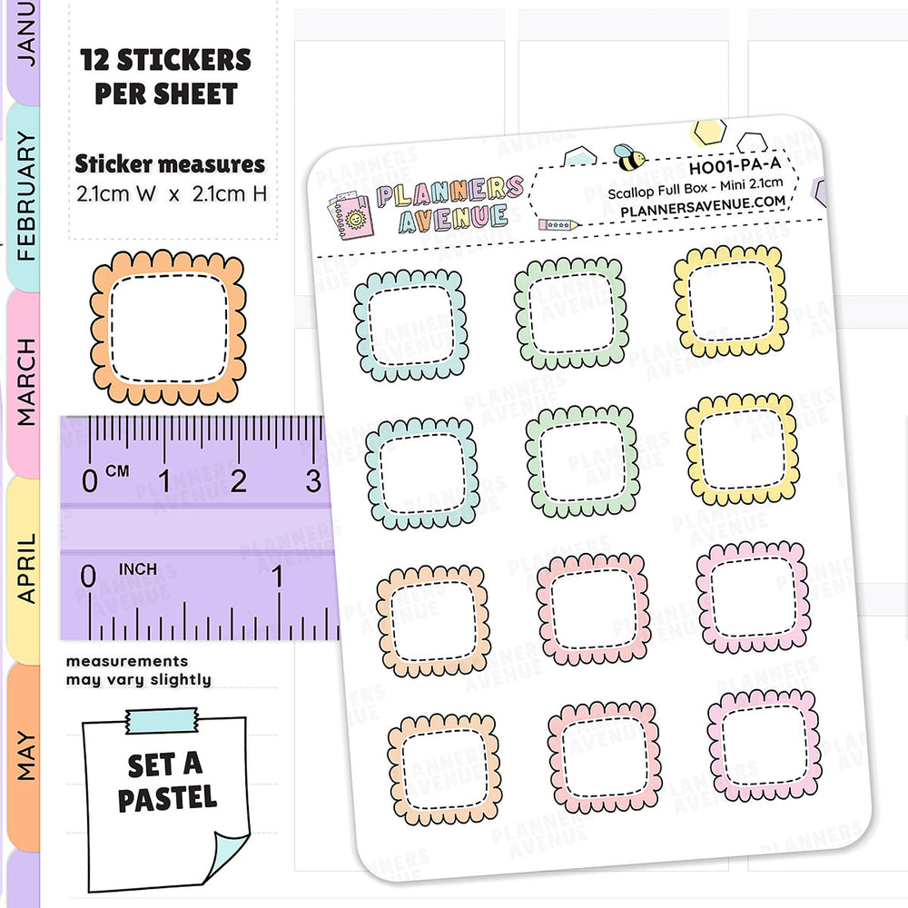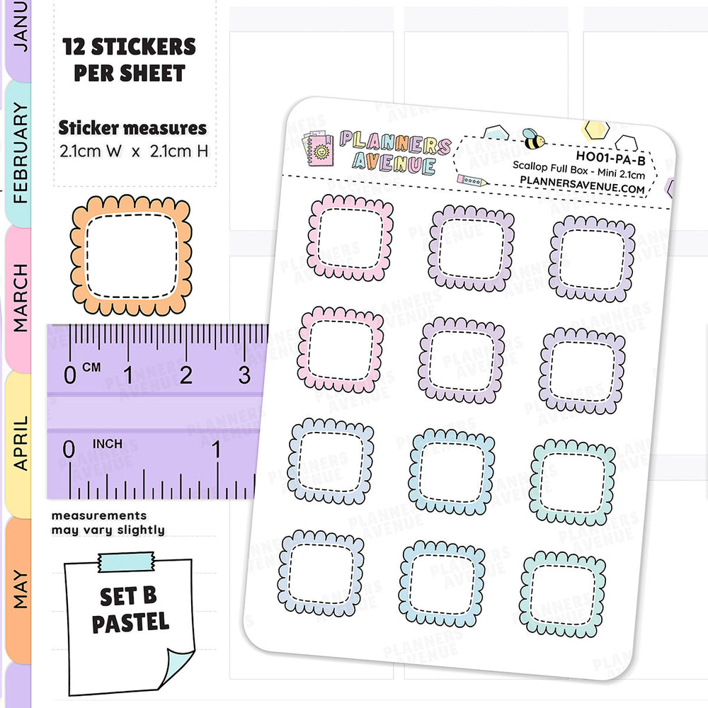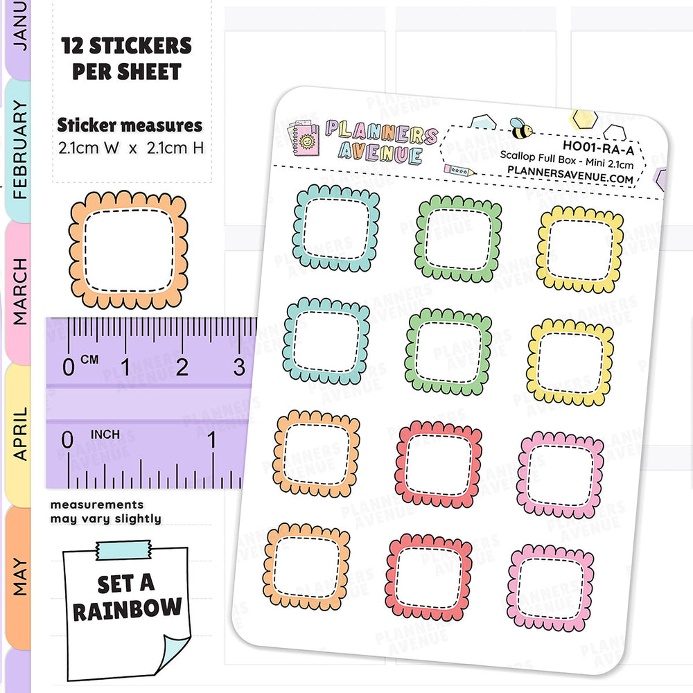These Hobonichi Scalloped Box Stickers are perfect as a functional element to your hobo weeks planner, journal and other planners.