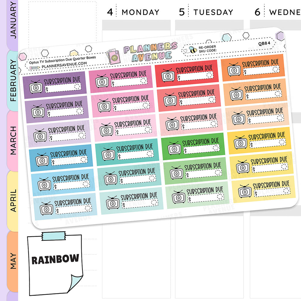 Optus Bill Due Quarter Box Stickers - Rainbow -- Made To Order will ship when stock available