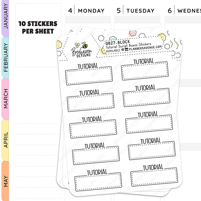 - You will receive One (1) sheet of 10 x Tutorial Quarter Box Stickers.