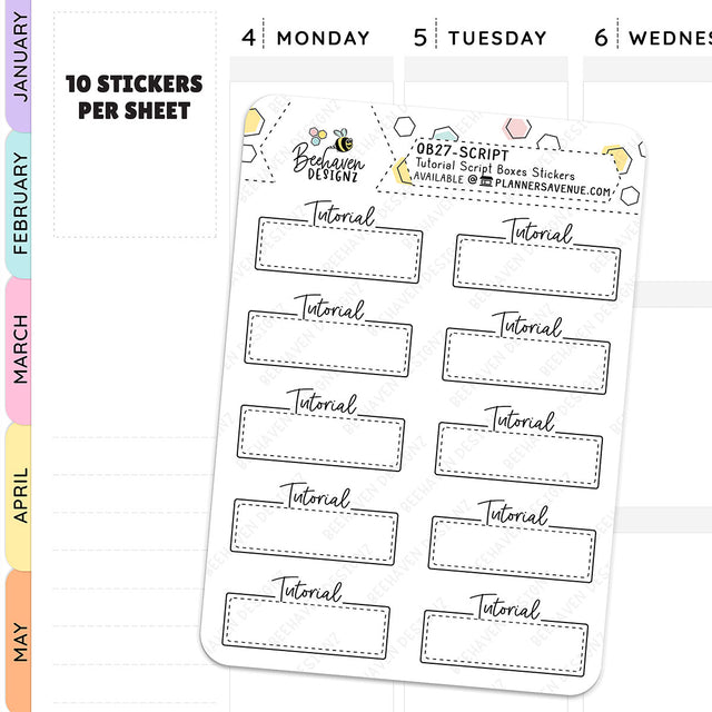 Tutorial Script Box Planner Stickers - Block Text -- Made To Order will ship when stock available