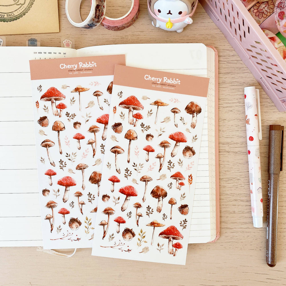 Mushroom Washi Paper Stickers by Cherry Rabbit -- Made To Order will ship when stock available