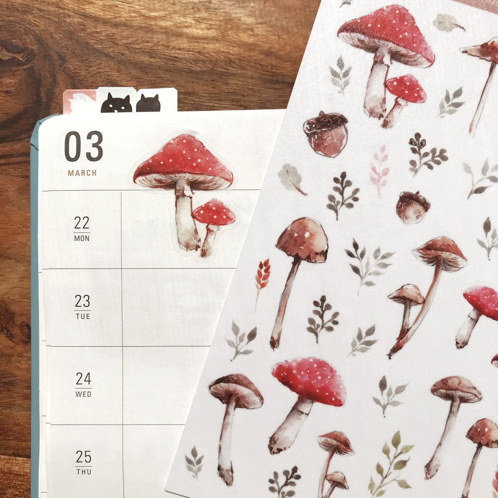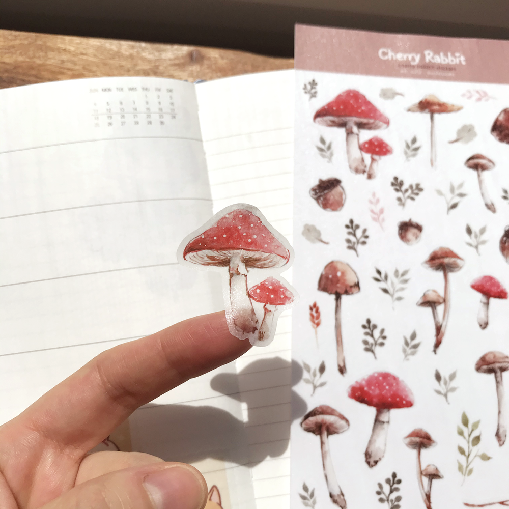 Mushroom Washi Paper Stickers are made from semi-transparent adhesive washi paper.