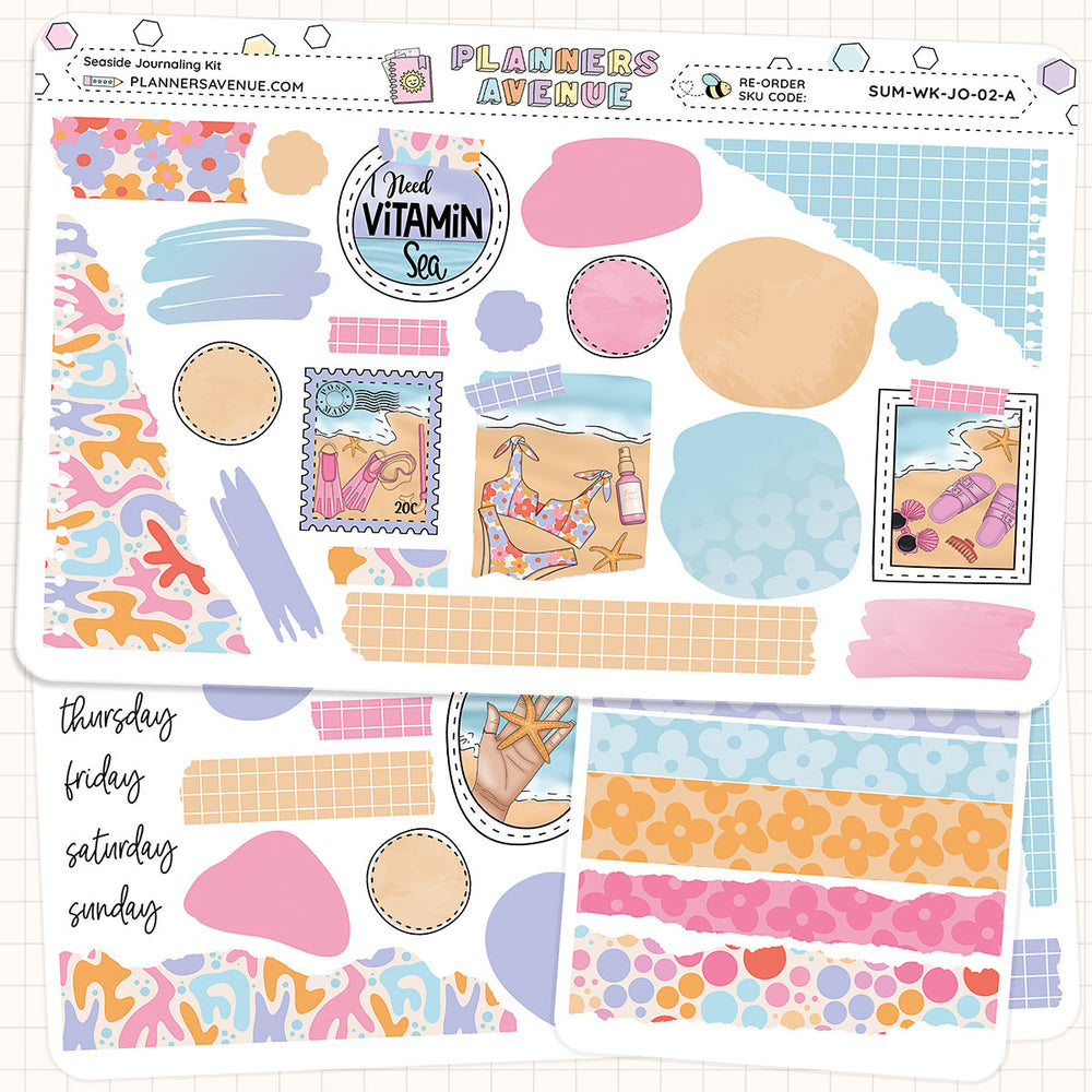 This Seaside Journaling Sticker Kit is designed to use in any planner, notebook or journal for flexibility to use in just about any size planner.