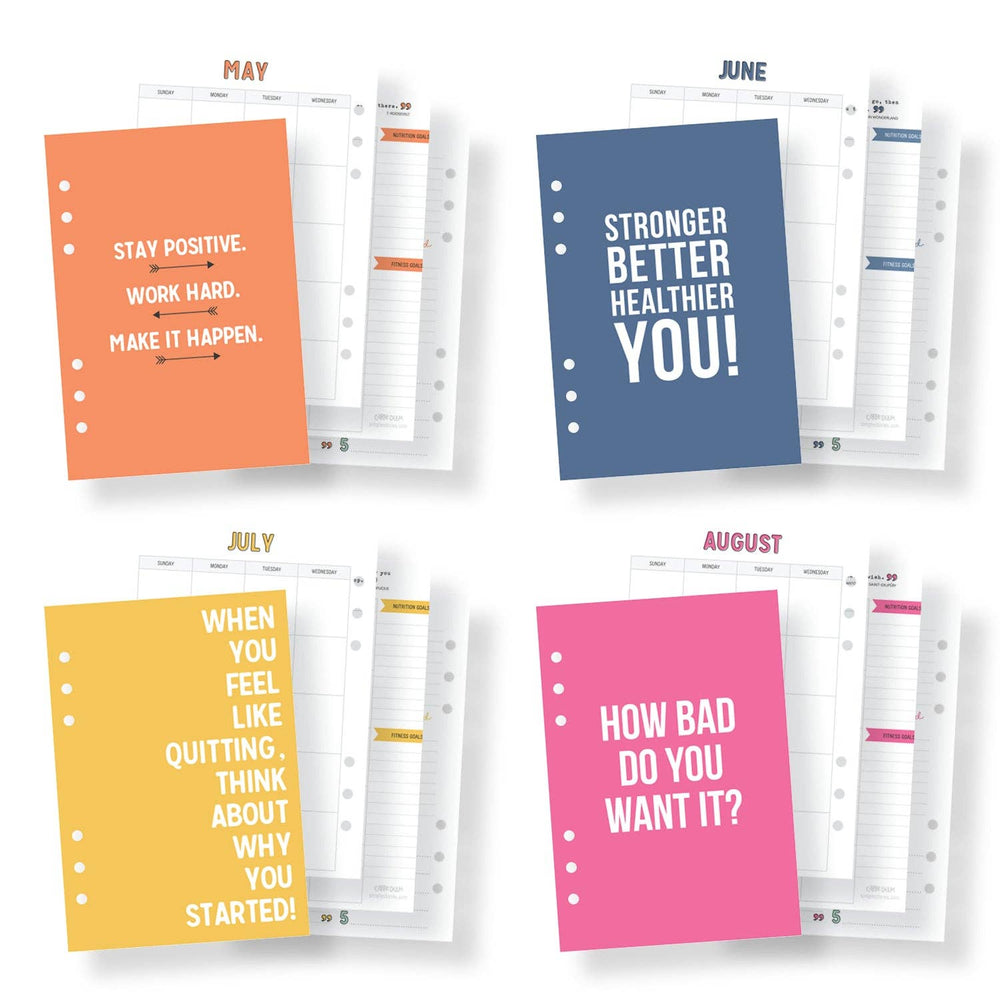 Carpe Diem Fitness A5 Planner Inserts Undated are amazing for anyone who loves to set fitness goals and keep track of your progress. Simply insert these into your planner and keep on track of your fitness goals.