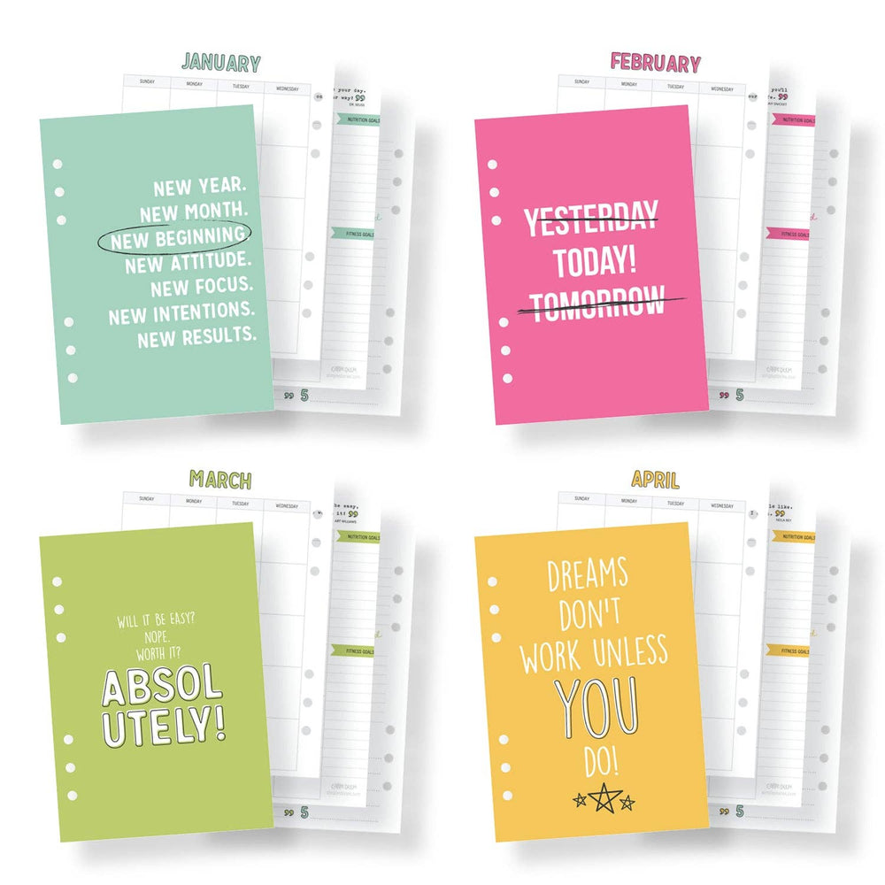 Features of Carpe Diem Fitness A5 Planner Inserts Undated