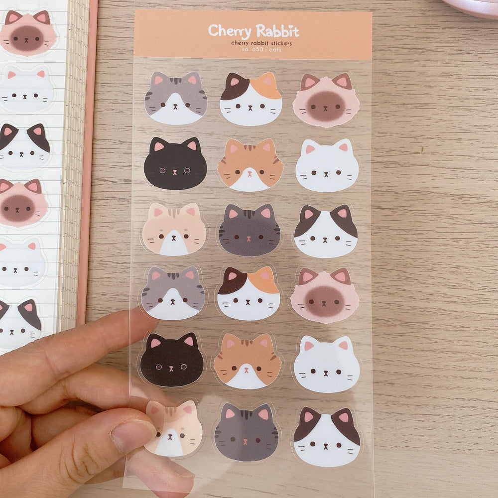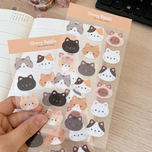 Cat Face Clear Stickers by Cherry Rabbit -- Made To Order will ship when stock available