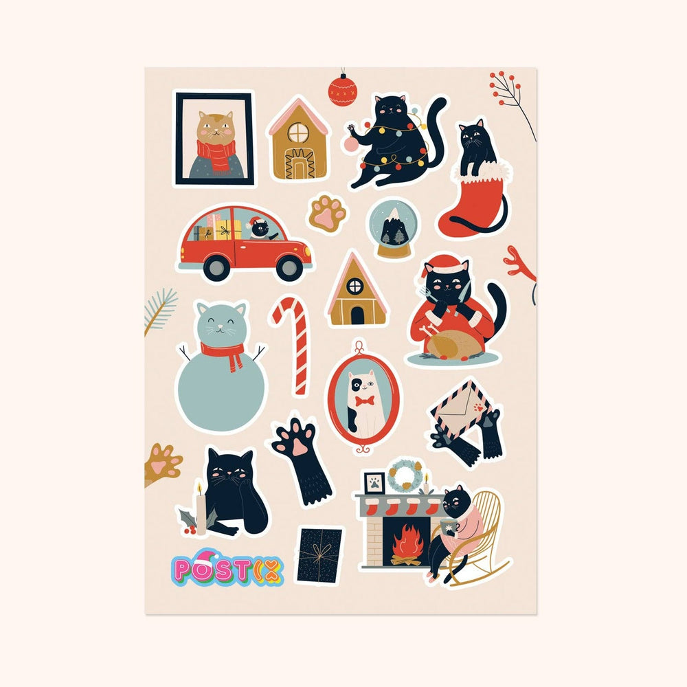 This Meowy and Bright Sticker Sheet features a fun cat family all set for Christmas. Mum's on her rocking chair. Dad's carving the turkey. Mmm, turkey... And the kids are building a snowcat. The fun sticker sheet includes 17 stickers that is perfect for the cat lover this Christmas.