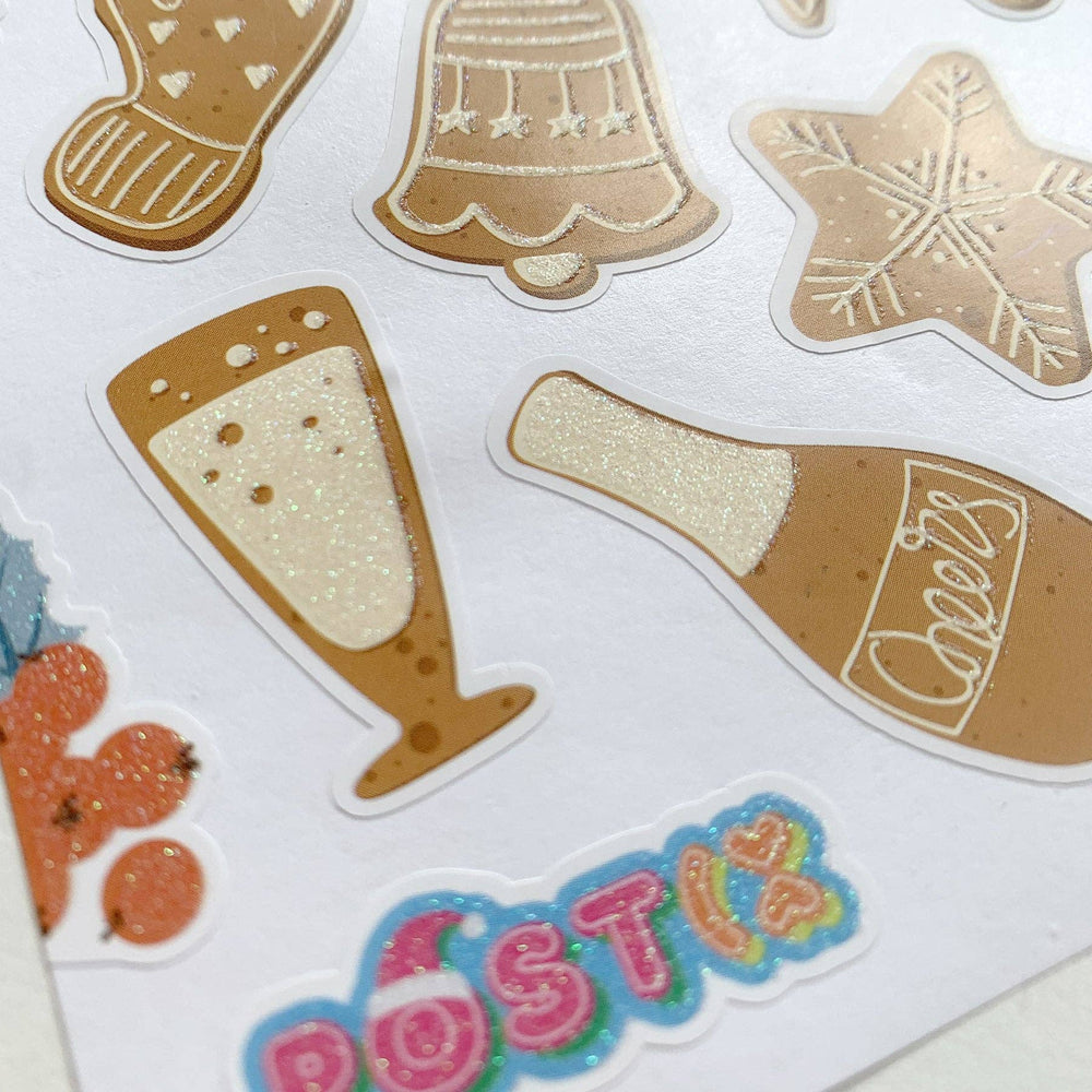 Christmas Gingerbread Cookies Glitter Sticker Sheet -- Made To Order will ship when stock available