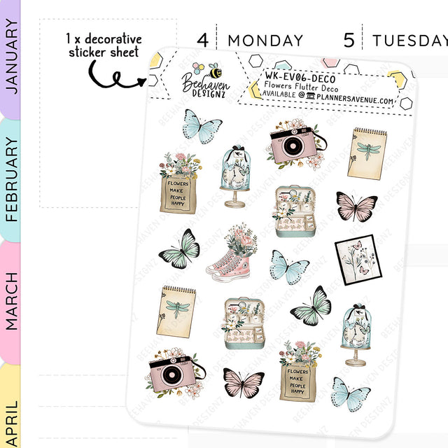Flowers Flutter Decorative Planner Sticker -- Made To Order will ship when stock available