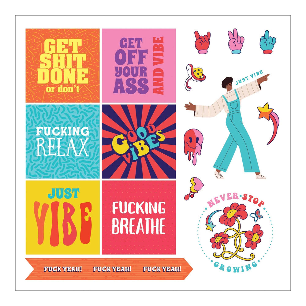 Say goodbye to bad vibes with these irreverent and inspiring stickers inside the Inner F*cking Peace Sticker Book.