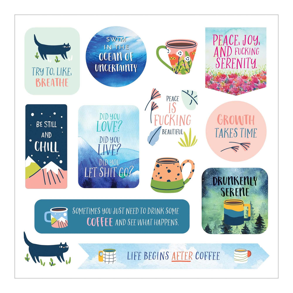 - Discover snarky and uplifting phrases to help you find your calm, from ''Slow Down'' to ''Today Is a Damn Fine Day'' to ''Lazy But Amazey'' to ''Excuse Me, I'm Recharging Here'' and dozens more!