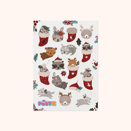 Sleeping Christmas Animals Glitter Sticker Sheet