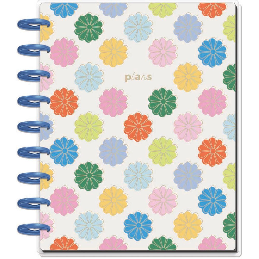 The design features touches of florals, gold foil accents, and checkered patterns. The Happy Planner disc bound system allows you to add/remove pages and personalize with snap-in accessories.