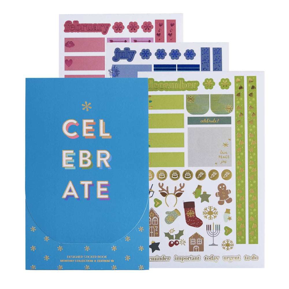 From inspirational sayings to monthly motifs, decorate and celebrate all year long with a page of gorgeous, colourful, and mixed metallic stickers for every month.