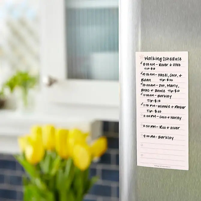 Jot thoughts, notes, reminders, flag a deadline, and more. Simply apply the reusable sticky note to a flat surface and write with wet- or dry-erase markers.