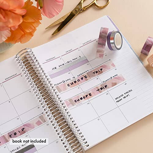 Washi Tape to add colour to a page, mark the length of a trip, mark the length of a trip, help structure your hourly planner, or add more dimension to any planner.