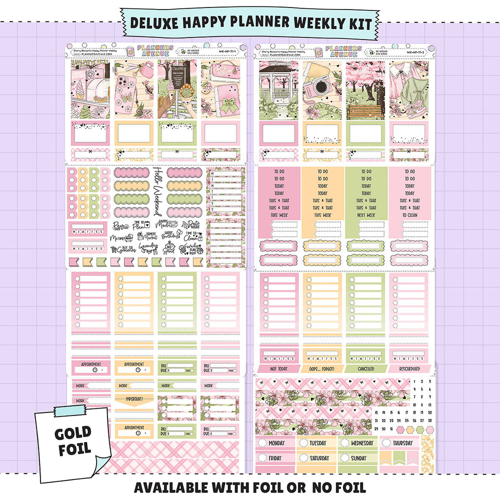 Cherry Blossoms Happy Planner Weekly Sticker Foiled Kit (GOLD FOIL) - Happy Planner Weekly Kit / NO Foil -- Made To Order will ship when stock available