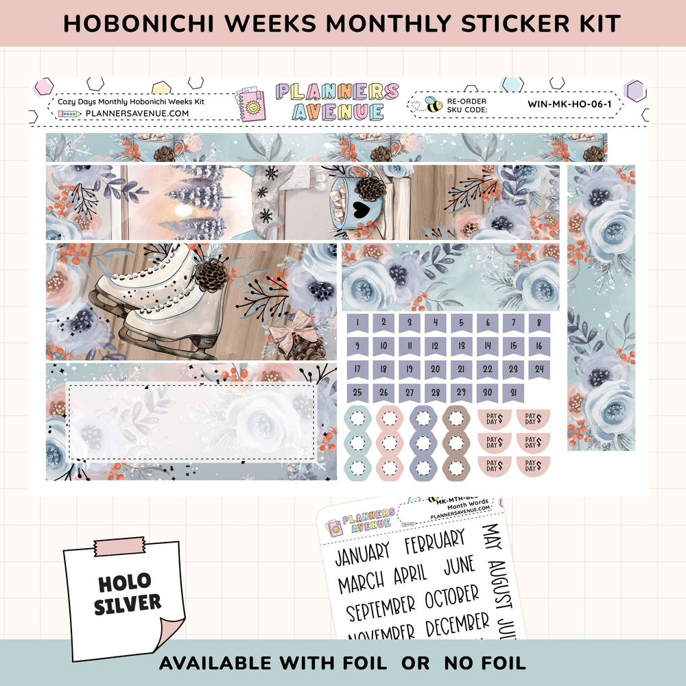 Cozy Days Hobonichi Monthly Sticker Foiled Kit (HOLO SILVER FOIL)