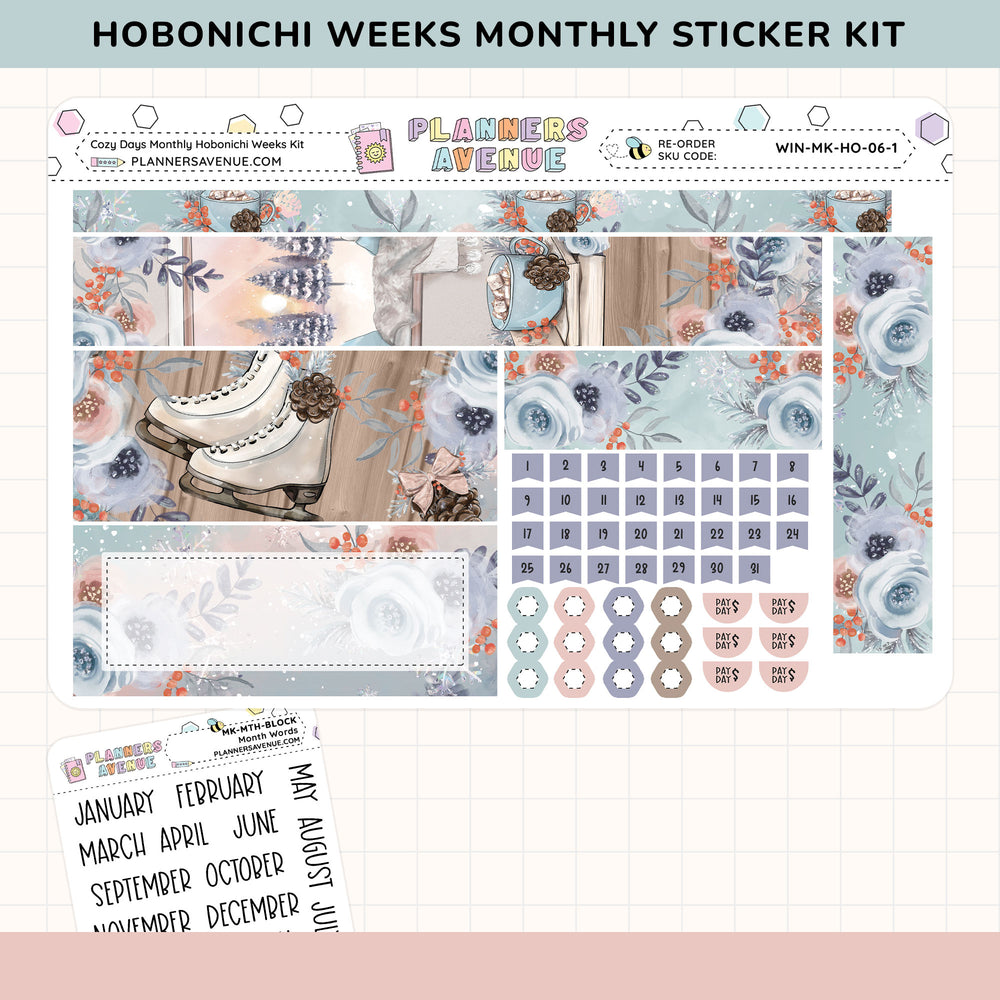 Cozy Days Hobonichi Monthly Sticker Foiled Kit is designed for decorating the monthly view in your Hobonichi Weeks planner or other similar planner sizes such as Lime weeks and Mini Mallow planner.