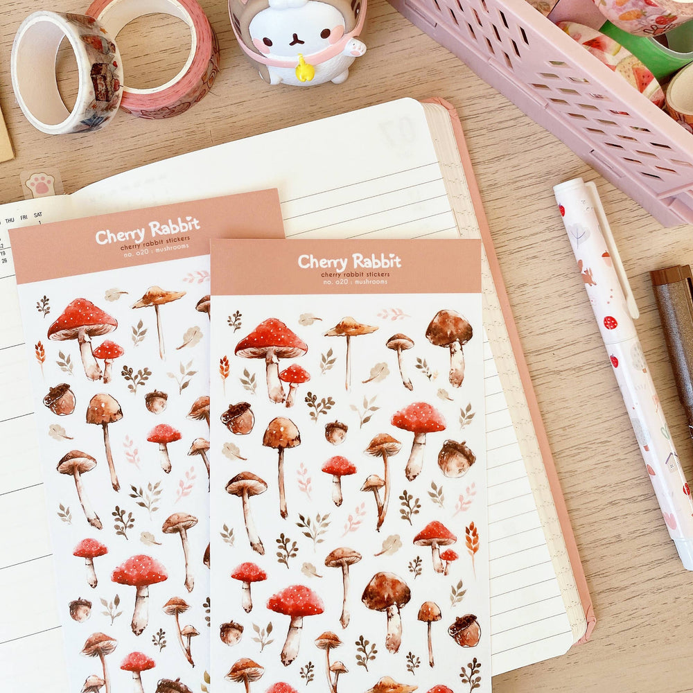 Mushroom Washi Paper Stickers by Cherry Rabbit -- Made To Order will ship when stock available