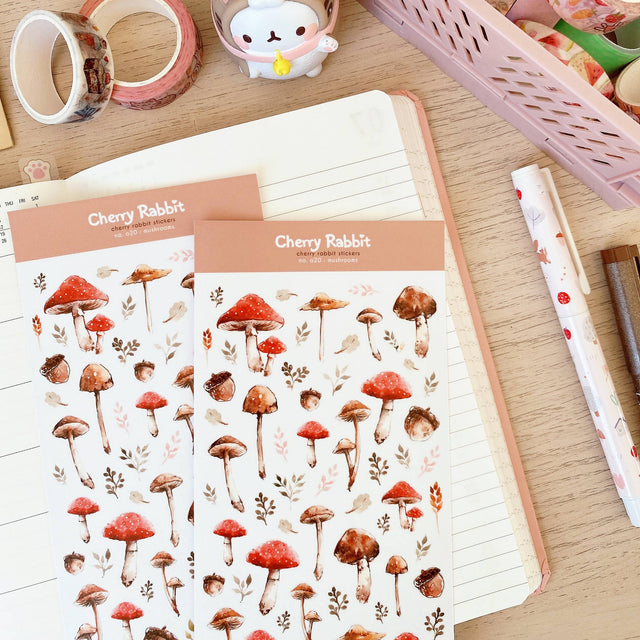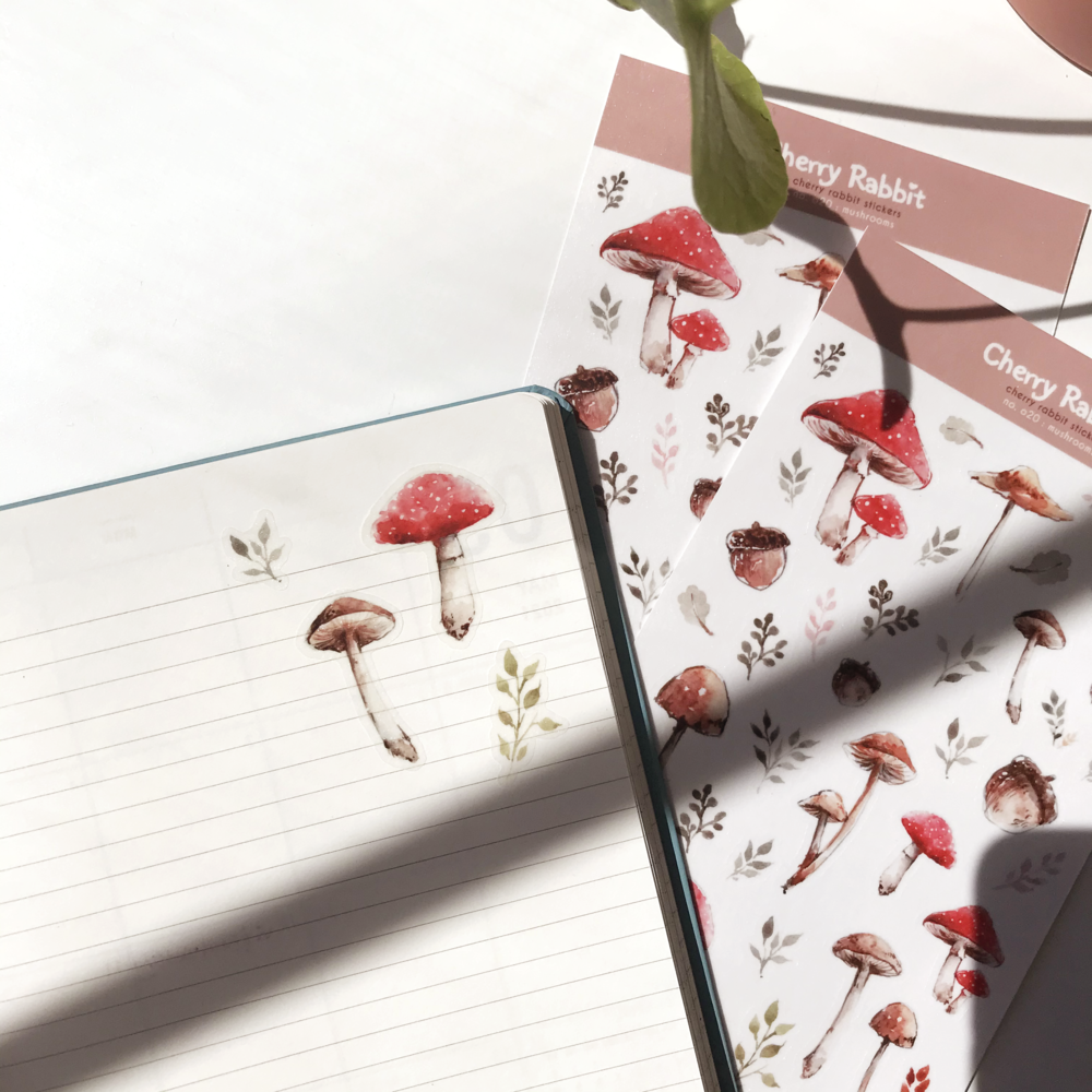 Mushroom Washi Paper Stickers are made from semi-transparent adhesive washi paper.