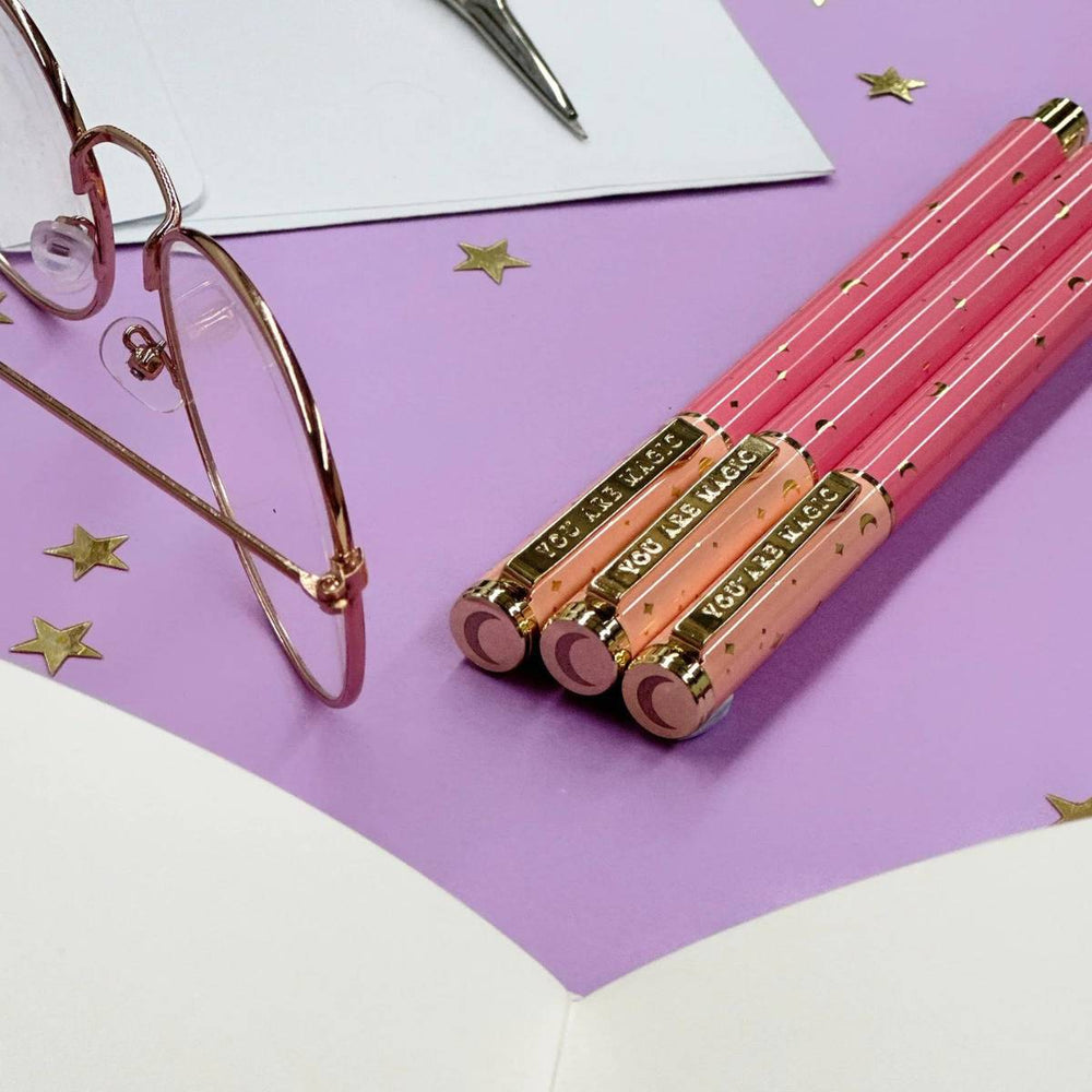A pen to match your Quirky Journal? It's a yes from me. Moons and stars printed in gold foiling on the pen? Um super cute and absolutely essential. Adorable little affirmation on the clip to remind you how magical you are? Shut up and take my money.