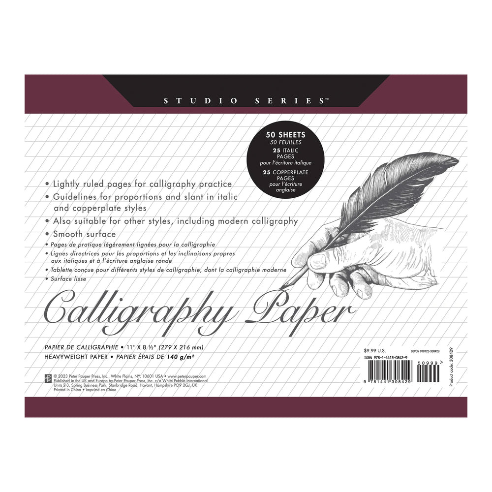 Super-smooth Calligraphy Paper Pad of practice pages are lightly ruled for Italic and Copperplate, but are versatile enough for practicing other writing styles!