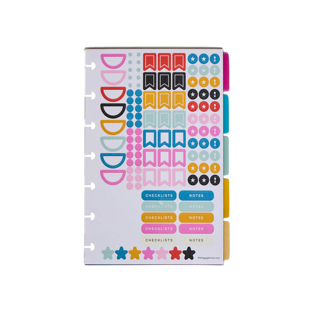 - 1 sticker sheet with reminders, bullets, and memo boxes