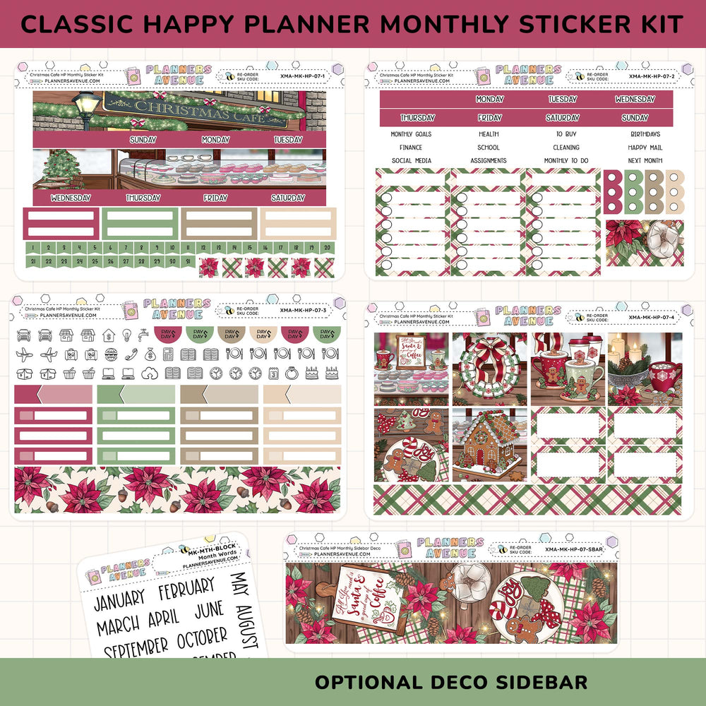 Christmas Cafe Happy Planner Monthly Sticker Kit is perfect for decorating the monthly view in your classic Happy Planner or other similar planner layouts.