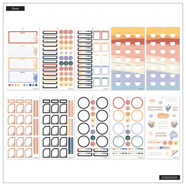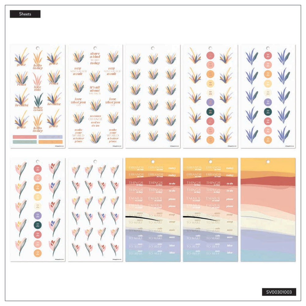 - Make planning calming with box stickers, quote stickers, and soothing accent stickers.