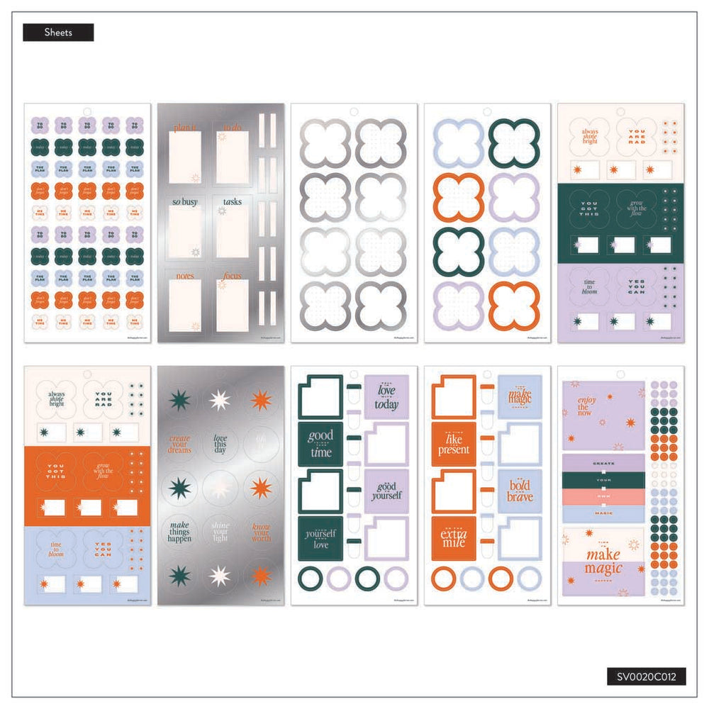 Planning stickers suited for any Classic-size Happy Planner, notebook, or bullet journal. This sticker pack features fun colourful stickers with floral-inspired accents.