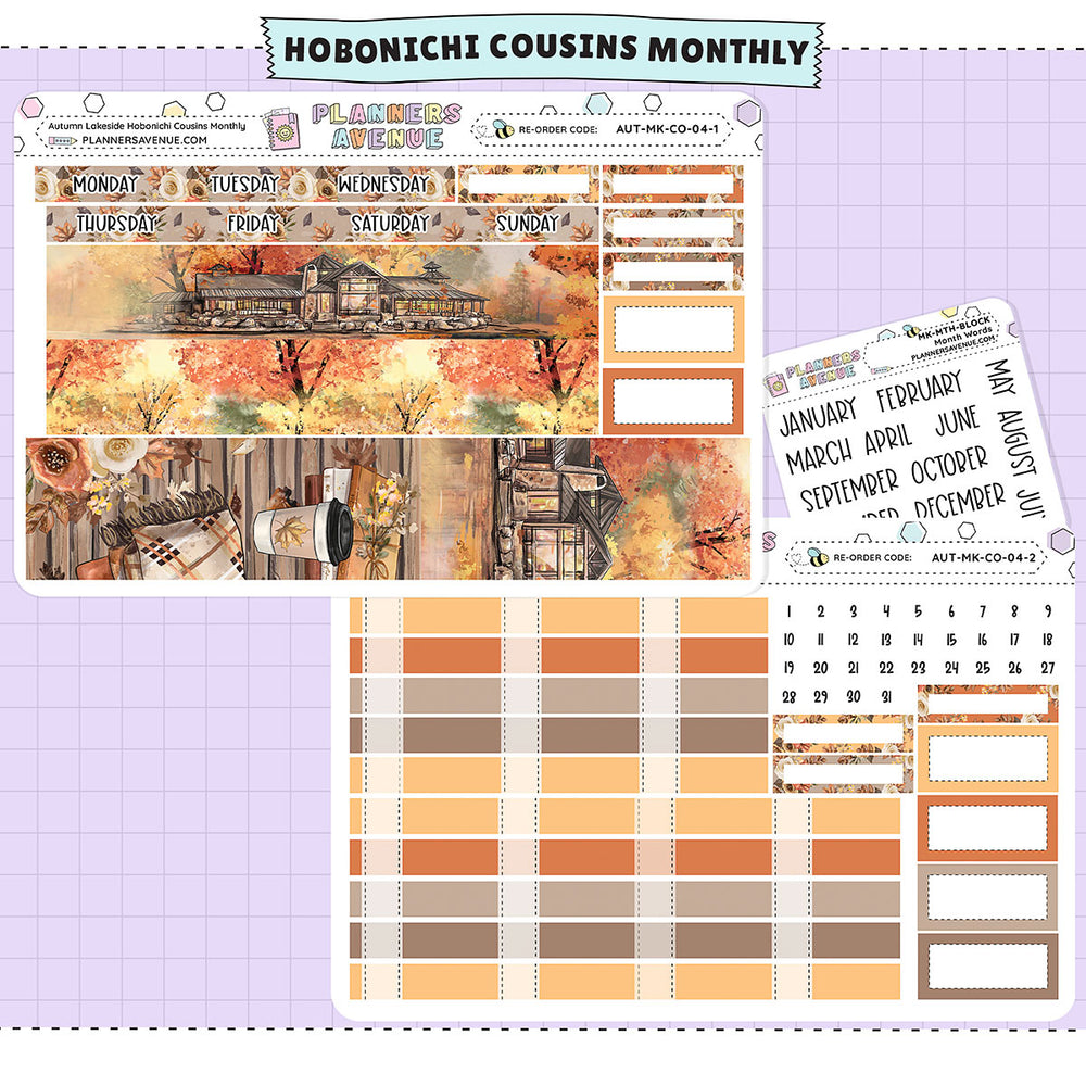 Features of Autumn Lake Hobonichi Cousins Monthly Sticker Kit