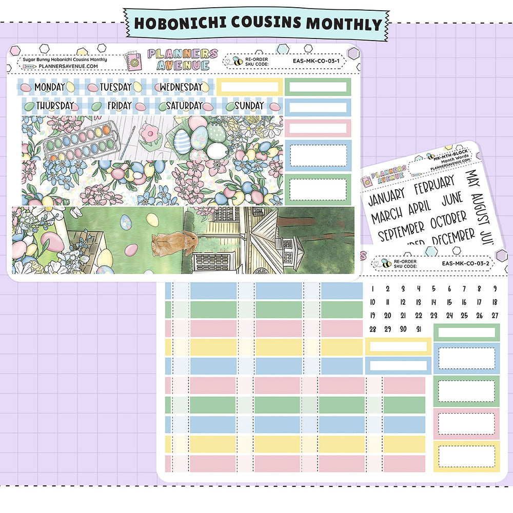 Features of Sugar Bunny Hobonichi Cousins Monthly Sticker Kit