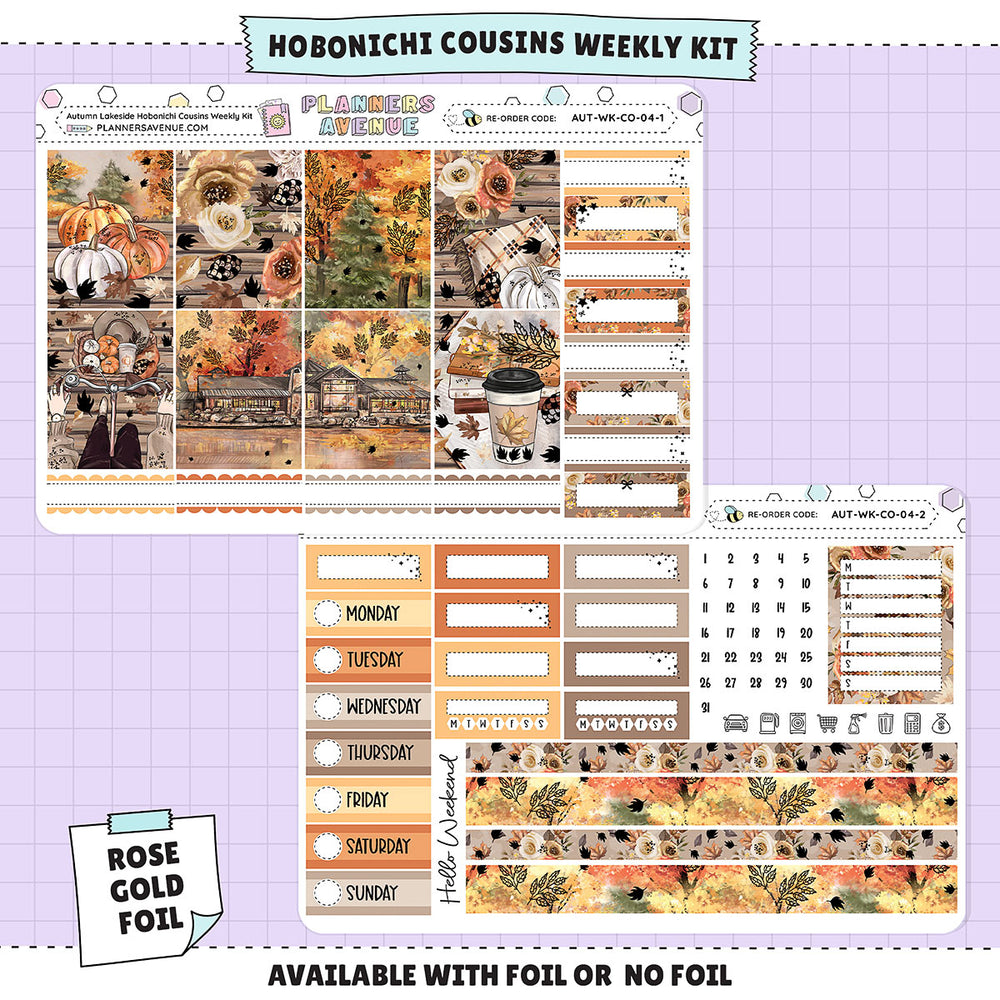 Features of Autumn Lake Hobonichi Cousins Weekly Sticker Foiled Kit